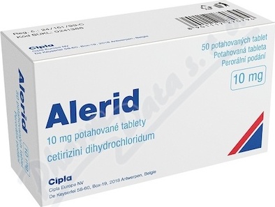 Alerid se u dospělých a u dětí od 6 let věku používá ke: zmírnění nosních a očních příznaků sezónní a celoroční alergické rýmy, zmírnění příznaků chronické kopřivky nejasného původu (chronické idiopatické urtikárie). Léčivou látkou přípravku Alerid je cetirizin-dihydrochlorid. Alerid je přípravek používaný k léčbě alergií (antialergikum). Pokud se do 3 dnů nebudete cítit lépe nebo pokud se Vám přitíží, musíte se poradit s lékařem. Balení obsahuje 50 tablet.