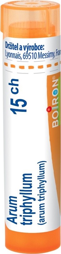 ARUM TRIPHYLLUM 15CH je homeopatický léčivý přípravek bez schválených léčebných indikací.Balení obsahuje 4 g granulí.