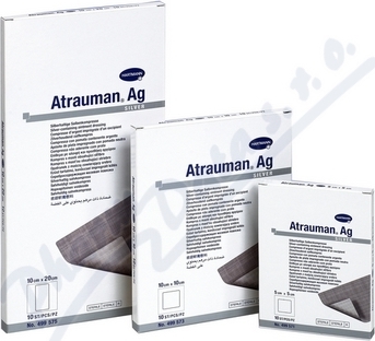 Nepřilnavé bariérové krytí s obsahem stříbra pro atraumatickou léčbu ran je zdravotnický prostředek. Atrauman® Ag je nepřilnavá kontaktní vrstva na rány vhodná k léčbě chronických ran, jako jsou bércové vředy, diabetické vředy na nohou a dekubity. Krytí je také možné použít k ošetření akutních popálenin až do 2. stupně. Je zvláště vhodné pro infikované rány, hluboké rány (v kombinaci se sekundárním krytím), všechny typy povrchových ran a jako ochrana před infekcí a průnikem choroboplodných zárodků do rány. Atrauman Ag je třeba kombinovat s vhodným sekundárním krytím (savým, supersavým nebo pěnovým krytím, popřípadě gázou – například Zetuvit Plus) v souladu s návodem k použití.Hlavní výhodyBariérové krytí se stříbrem.Tenký a lehký materiál, který lze jednoduše stříhat.Zajišťuje těsný kontakt s celou spodinou rány.Podporuje klidný proces hojení.Preventivně zamezuje maceraci tím, že chrání a pečuje o pokožku v okolí rány.Umožňuje bezbolestnou výměnu krytí minimální adhezí k ráně.Může být kombinován se všemi typy absorpčního krytí.Také lze kombinovat se systémem Vivano® pro podtlakovou terapii ran.Šetří čas díky jednoduché manipulaci.Balení obsahuje 10 ks krytí o velikosti 10 x 20 cm.