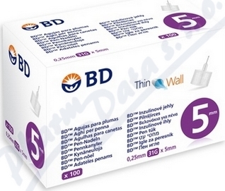 Inzulinové jehly BD na jedno použití jsou vhodné pro inzulinová i neinzulinová pera. Jehly jsou kompatibilní se všemi pery běžně dostupnými na trhu. Inzulinové jehly BD s tenkou stěnou umožňují jednodušší, rychlejší a pohodlnější aplikaci injekcí. Rozměry jehly jsou 0,25 x 5 mm.