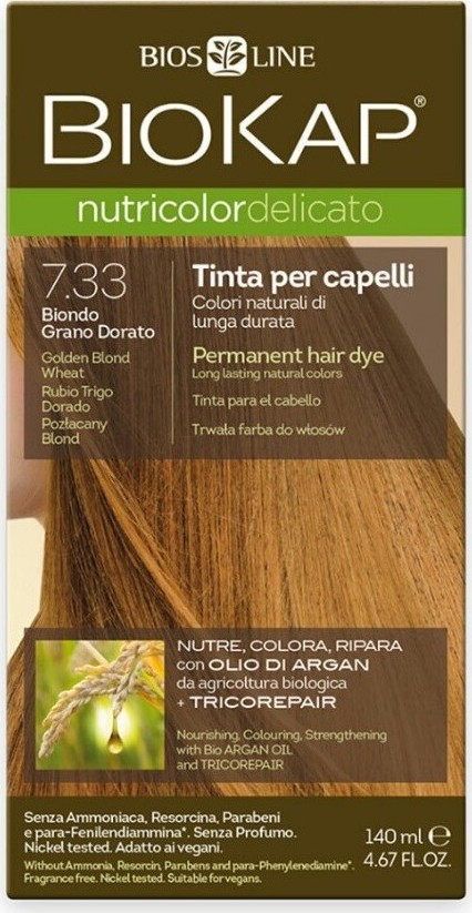 Další parametry BIOKAP Barva na vlasy 7.33 blond zlatá pšenice 140ml