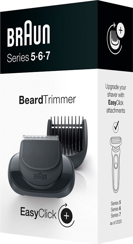 Nástavec pro zastřihování vousů EasyClick pro elektrické holicí strojky Braun Series 5, 6 a 7 (nová generace) Vylepšete svůj elektrický holicí strojek tímto nástavcem pro zastřihování vousů EasyClick5 různých délek pro dokonalý styling vousů (1, 2, 3, 5 a 7 mm)Vousy jsou zachyceny v zastřihovacím prvku, a tak výrazně omezují nepořádek ze zastřihováníKompatibilní s novou generací holicích strojků Series 5, Series 6, Series 7Hlava a hřebeny jsou plně omyvatelné pod tekoucí vodou Hlava zastřihovače vousů Braun plus 5 hřebenů Vylepšete svůj holicí strojek na nástroj pro péči o tělo 3v1. Dokonalá přesnost pro 100% kontrolu nad vaším stylem. Rovnoměrné zastřižení, ať máte jakýkoli styl Délky hřebenů se liší od 1 do 7 mm - můžete tak snadno vytvářet a udržovat jakýkoli styl. Doživotní přesnost Doživotně ostré břity jsou navrženy podle nejvyšších standardů a bez ustání vám zajistí přesné zastřižení. Čisticí stanice SmartCare Pro hladké oholení každý den. Čisticí stanici SmartCare používejte po každém holení. EasyClick Nástavce EasyClick jsou k dispozici pro jakýkoliv styling a zastřihování: zastřihovač vousů, strniště, zastřihovač vousů, nástavec pro péči o tělo, čisticí kartáček. Omyvatelný Hlavu a hřebeny můžete jednoduše očistit pod tekoucí vodou.