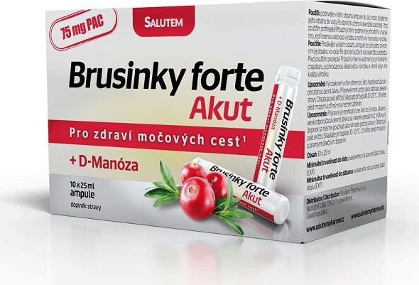 Brusinky Forte Akut 1500mg + D-Manosa 10 ampulí kvalitní značky SALUTEM Pharma - tento produkt dodáváme za úžasnou cenu 359 Kč. Naše výhodné nabídky čekají právě na vás. Nakupování na internetu je výhodnější než v kamenné prodejně, která má vyšší náklady.