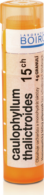 CAULOPHYLLUM THALICTROIDES 15CH je homeopatický léčivý přípravek bez schválených léčebných indikací.Obsahuje sacharózu a monohydrát laktózy. Balení obsahuje 4 g granulí. Pozorně čtěte příbalovou informaci.