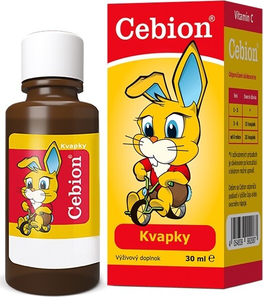 Cebion kapky je doplněk stravy obsahující vitamín C s jednoduchým dávkováním pro různé věkové skupiny, speciálně určený dětem.Vitamín C přispívá k:Normální funkci imunitního systému.Snížení míry únavy a vyčerpání.Normální tvorbě kolagenu. Ochraně buněk před oxidativním stresem.Zvyšuje vstřebávání železa.Balení obsahuje 30 ml (600 kapek).
