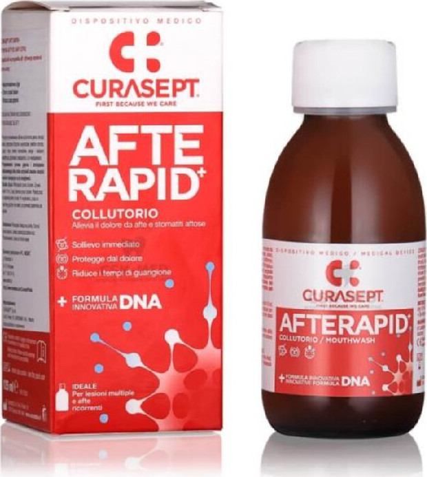 CURASEPT AFTERAPID ústní voda pomáhá ulevovat při nekomfortu v dutině ústní a při stomatitidě. Je ideální pro celoplošný účinkem při mnohočetných poraněních a opakujícím se výskytu ranek v dutině ústní. Napomáhá k regeneraci dásňové tkáně zvýšením hydratace sliznic.Použití vhodné pro:celoplošný výplach dutiny ústníBalení obsahuje 125 ml.