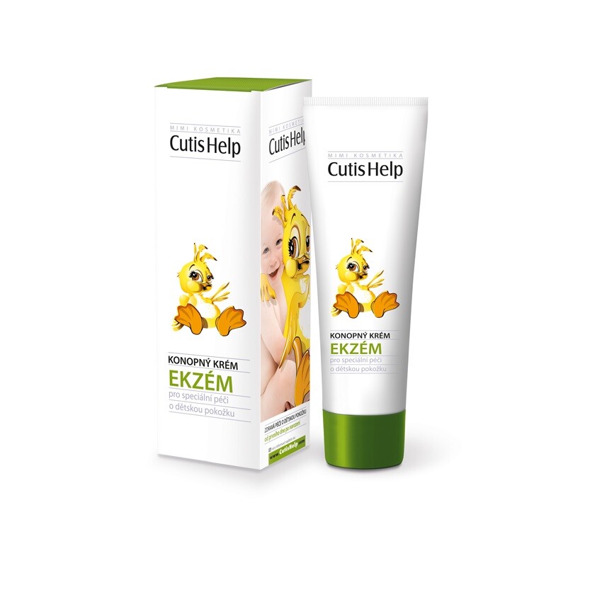 Hypoalergenní konopný krém CutisHelp s obsahem konopného oleje je přípravek pro léčbu dětské pokožky zasažené atopickým ekzémem, kopřivkou a dalšími kožními projevy alergického původu. Krém pokožku zklidňuje, hloubkově regeneruje a hydratuje. Vhodný pro ošetření i velmi citlivé pokožky nejmenších dětí. Struktura krému připomíná kožní maz, tím nahrazuje funkce narušené přirozené kožní bariéry. Velice snadno se vstřebává a je k pokožce velmi šetrný. Také zlepšuje elasticitu kůže a dodává buňkám potřebnou výživu pro zajištění správného vývoje a funkcí.