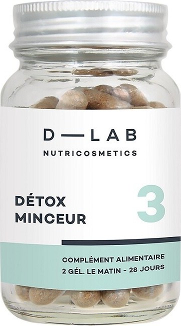 D-LAB Detox Minceur je doplněk stravy ve formě tobolek, který obsahuje artyčok, kurkumu a ascophyllum.Artyčok přispívá k normálnímu trávení a funkci jater, k pročištění a ke kontrole tělesné hmotnosti.Kurkuma podporuje normální činnost jater.Ascophyllum přispívá ke kontrole tělesné hmotnosti a hubnutí.D-LAB NUTRICOSMETICS:Je přední francouzská značka nutriční kosmetiky, která se řídí vizí, že krása začíná uvnitř. Každodenní stres, strava chudá na mikronutrienty a další vnější příčiny se odráží na optimálním fungování našeho těla a výrazně ovlivňují stav naší pokožky, pleti či vlasů. Díky těmto doplňkům stravy můžete pomoci svému tělu najít opět vnitřní balanc, který se pozitivně odrazí na Vaší vnější kráse. Čistě přírodní certifikované produkty, které se skládají z vysoké koncentrace výtažků z bylin, ovoce a dalších přírodních složek nejvyšší kvality. Produkty splňují nejpřísnější mezinárodní standarty a účinnost je ověřená klinickými testy. Bez konzervačních látek, bez nanočastic, bez GMO a bez obsahu živočišných složek.Garance ekologického balení, které šetří životní prostředí. Na obaly není používán žádný plastový materiál. Maximální využitelnost aktivních složek je zaručena gastrorezistentními tobolkami. Tobolka z rostlinného materiálu se nerozpustí v žaludku, ale přímo ve střevech, což je klíčovým aspektem k účinnosti. Balení obsahuje 56 tobolek.