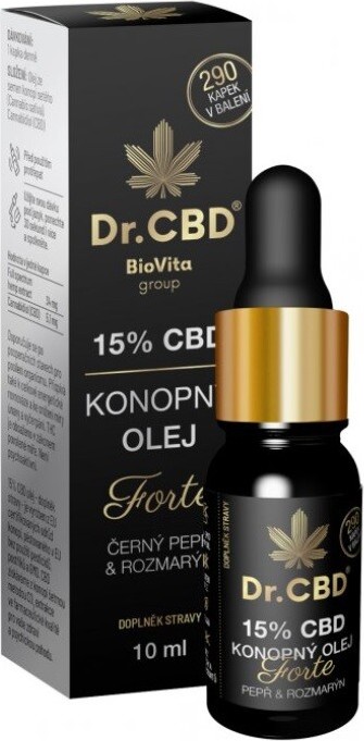 Dr.CBD 15% CBD konop.olej Forte č.pepř rozmar.10ml