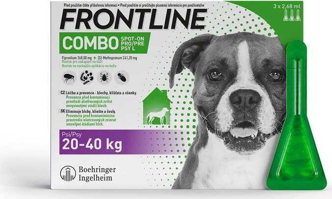 Frontline Combo Spot on Dog 20-40kg pipet.3x2.68ml od populárního výrobce Boehring Ingelheim Animal - toto zboží si můžete nechat dodat v sezónní slevě za 709 Kč. Doporučujeme pouze prověřené prodejce a e-shopy. DOPRAVA ZDARMA nyní i bez speciálního kupónu, pro objednávky nad Kč. Neotálejte s nákupem, cenu můžeme garantovat jen pro dnešní den.