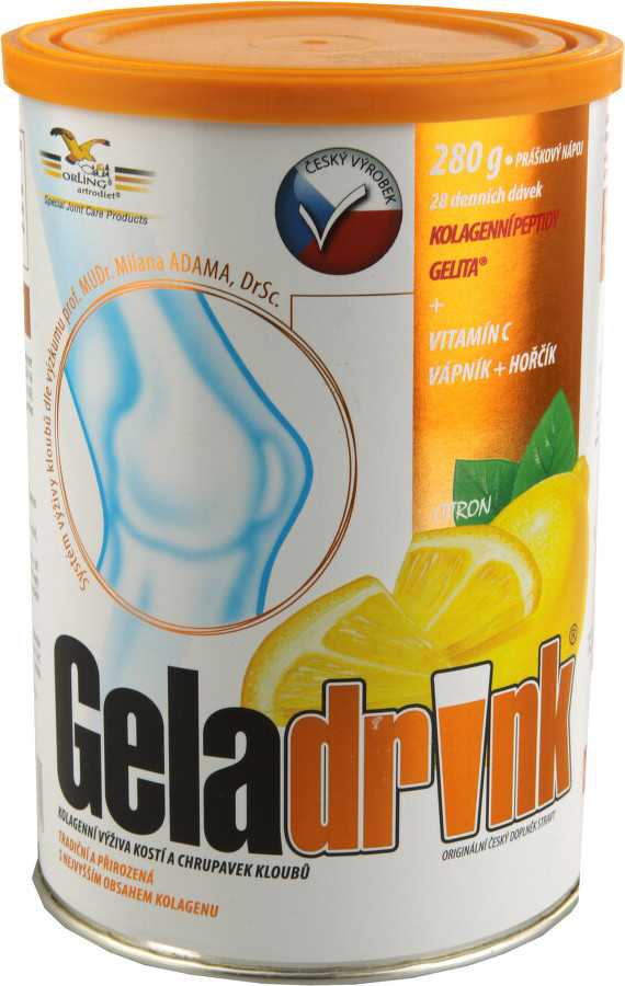Geladrink je zdrojem látek s nutričním a fyziologickým účinkem. Výživa kostí a chrupavek kloubů s nejvyšším obsahem kolagenu. Geladrink je určen pro ty, co přetěžují či namáhají své klouby, ať už fyzickou prací, sportem nebo naopak nedostatečným pohybem či nadváhou. Geladrink je ve formě práškového nápoje s příchutí citrónu.