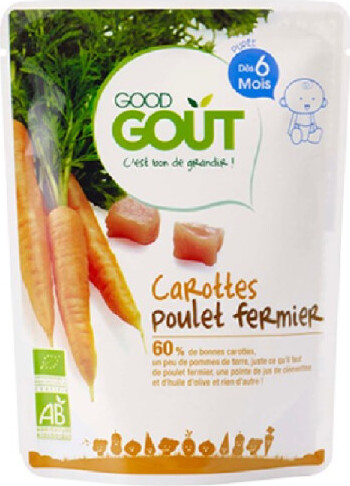 Good Gout Mrkev s farmářským kuřátkem BIO je dětská výživa pro malé strávníky ve věku od ukončeného 6. měsíce. Zeleninovo-masový příkrm pro zvláštní výživu kojenců a malých dětí je sterilovaný a tepelně upravený. Neobsahuje žádný lepek.Mrkev a další zelenina, které jsou součástí příkrmu, jsou v BIO kvalitě spolu s kuřetem z ekologického zemědělství. Společně tyto suroviny rozehrají skvělou partii chutí na každém mlsném jazýčku.Proč pro vaše děťátko zvolit produkty Good Gout? Protože recepty jsou jednoduché, krátké a úplné: připraveno odborníky na výživu a je kladen důraz na jedinečné spojení chutí.Protože výrobky jsou 100% BIO. Žádné ze surovin nebyly během pěstování ošetřeny GMO, pesticidy ani žádnými umělými hnojivy.Protože obal je tak přitažlivý a praktický. Je znovu uzavíratelný a zaručí tím, že vaše děťátko bude mít svou stravu vždy čerstvou.Balení obsahuje 190 g.