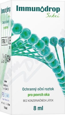 Immunodrop Sakei je zdravotnický prostředek určený k ochraně a stabilizaci povrchu oka zejména při změnách slzného filmu, u červených očí, při podráždění vnějšími vlivy nebo u suchých očí. Slzný film zvlhčuje povrch oka, reguluje zánětlivou reakci očního povrchu a podporuje regenerační procesy. Je fyziologickou bariérou proti okolním bakteriím a chrání oční povrch proti jejich možnému pomnožení. Optimální stav očního povrchu proto přispívá ke správné reakci na zánět a podráždění. Immunodrop obnovuje přirozenou rovnováhu slzného filmu, která se mění během oční infekce nebo po ní, při opakovaných očních zánětech a po operacích. Immunodrop se podílí na rekonstrukci a stabilizaci slzného filmu, zkracuje dobu rekonvalescence oka Díky bakteriálnímu lyzátu Lactobacillus sakei a hypromelóze obnovuje přirozenou ochrannou bariéru proti vnějším mikrobiálním látkám nebo znečišťujícím látkám z vnějšího prostředí Snižuje vedlejší účinky při chronickém používání očních kapek (antiglaukomatika, protizánětlivé přípravky, antialergika apod.) Inovativní balení obsahuje ZEOLIT s aktivními ionty mědi a stříbra s antimikrobiálním účinkem. ZEOLIT má vysokou baktericidní, virucidní a fungicidní aktivitu Neobsahuje konzervační látky, tím brání dalšímu případnému podráždění oka Balení obsahuje 8 ml.