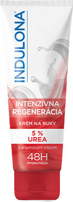 Indulona Krém na ruce INTENZIVNÍ REGENERACE je obohacený o 5 % urey, vynikající hydratační látky, která absorbuje a zadržuje vodu. Urea zvyšuje schopnost pokožky udržet přirozenou úroveň hydratace a rehydratuje. Obsažený arganový olej je bohatý na základní živiny a antioxidanty a má protizánětlivé účinky. Krém poskytuje velmi suchým a popraskaným rukám okamžitou a dlouhotrvající hydrataci, až po dobu 48 hodin. Má zklidňující a vyživující účinky, podporuje zdravý vzhled pokožky a zanechává ruce zregenerované a jemné. Dermatologicky testováno. Balení obsahuje 50 ml.