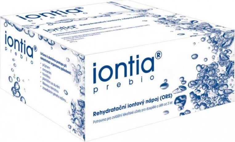 Iontia prebio, potravina pro zvláštní lékařské účely, je instantní směs pro přípravu perorálního rehydratačního roztoku pro dospělé a děti od 3 let. Nápoj je určený pro rychlé doplnění ztraceného množství tekutin, iontů a minerálů při dehydrataci organismu způsobené: průjmem, zvracením, horečkou, přehřátím ze slunění, tělesnou námahou, zanedbáním pitného režimu atd.Vhodné mít kdykoli po ruce v domácí i cestovní lékárničce pro děti i dospělé, dále pro sportovce jako iontový nápoj doplňující potřebné látky, vhodný rovněž pro těhotné a kojící ženy - obsažený zázvor podporuje normální trávení během časného těhotenství.Bez umělých ochucovadel a barviv. Bez konzervačních látek a aromat. Neobsahuje lepek.Balení obsahuje 1 sáček (o obsahu 9,1 g).