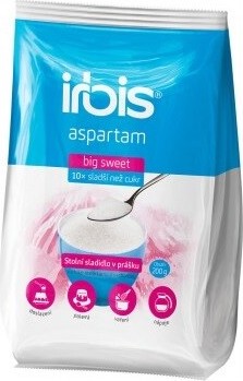 Irbis Big Sweet je stolní sladidlo v prášku na bázi aspartamu a sacharózy. Hodí se ke slazení teplých i studených nápojů, ovocných a zeleninových salátů, náplní dortů, krémů, jogurtů, pudinků, desertů, hotových jídel, atd. Je o 90 % méně kalorické než řepný cukr.Velikost balení je 200 g.