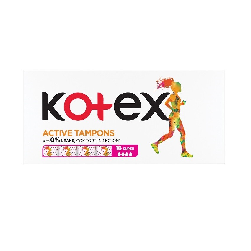 KOTEX Active tampony Super 16ks od top značky Kimberly-Clark - tento artikl nepropásněte za úžasnou cenu 59 Kč. Výhodné ceny máme pro všechny zákazníky. Zásilky nad Kč k vám budou dopraveny BEZPLATNĚ. Udělejte si radost.