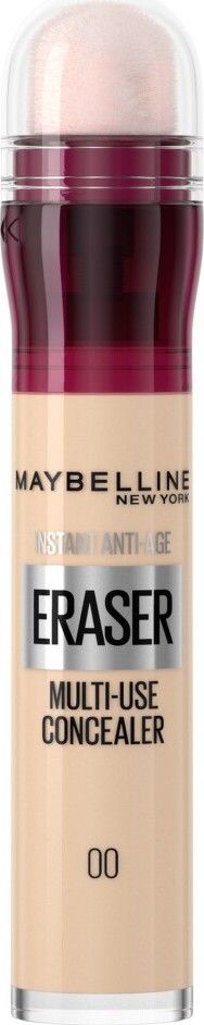 MAYBELLINE Instant Anti Age Eraser korektor v odstínu 00 - Ivory je tekutý korektor se speciálním aplikátorem, který vymaže kruhy pod očima a zakryje nekodonalosti nebo pomůže dotvarovat obličej. Tekutý korektor pomůže zakrýt nedokonalosti pleti včetně kruhů pod očima, jizviček a pigmentových skvrn.Pomáhá projasnit oční okolí či opticky dotvarovat obličej.Snadno se aplikuje díky speciálnímu houbičkovému aplikátoru.Balení obsahuje 6.8 ml.