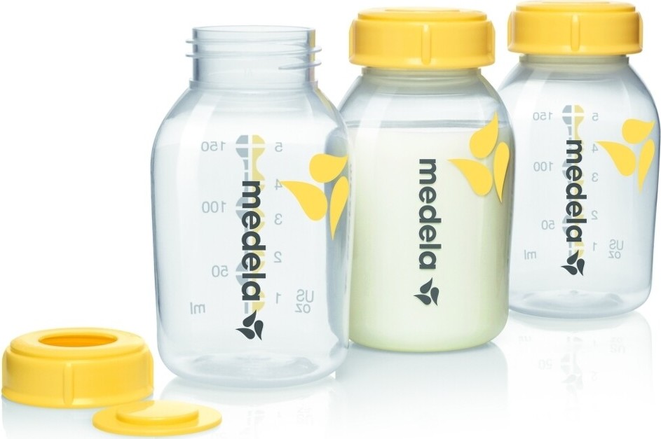 Medela láhve byly navrženy pro bezpečné, dlouhodobé skladování mateřského mléka bez ztráty jeho výjimečných vlastností. Jsou vyrobeny z bezpečného materiálu - polypropylenu, jehož samozřejmostí je absence škodlivé látky Bisphenolu-A. Velkou výhodou je jejich kompatibilita se všemi odsávačkami Medela. Samozřejmostí je značení objemu pomocí barevných měrek.Balení obsahuje 3 ks láhev 150 ml, 3 ks šroubovací uzávěr a 3 ks víčko.