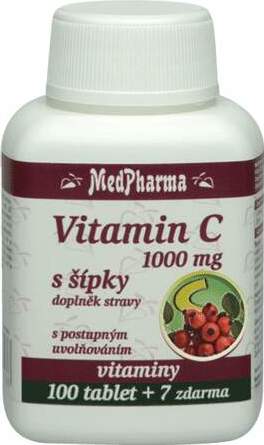 MedPharma Vitamín C 1000mg s šípky tbl.107 oblíbené značky MedPharma - tento artikl se na vás těší za skvělou cenu 177 Kč. Ve slevě nabízíme nepřeberné množství dalších položek. Dopravné bez jakéhokoliv poplatku se nyní vztahuje na objednávky s minimální hodnotou Kč. Zařaďte se mezi spokojené klienty.