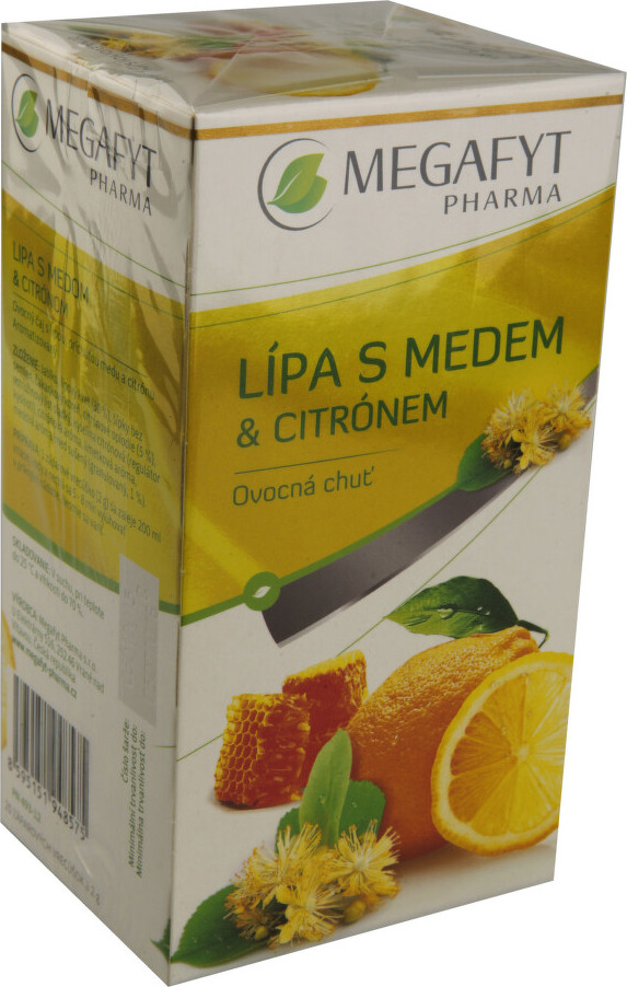 Megafyt Lípa s medem a citrónem je velice chutný ovocný aromatizovaný čaj, který se vyznačuje skvělou příchutí a příjemnou vůní lípy, medu a citrónu. Lipový květ má mnoho příznivých účinků. Zejména podporuje normální funkci dýchacích cest. Balení obsahuje 20 nálevových sáčků o obsahuz 2 g.