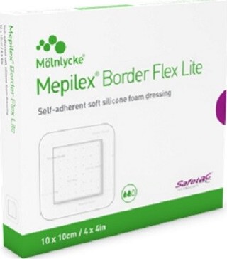 Krytí Mepilex Border Flex Lite je tenké, velmi pohodlné samolepicí absorpční krytí, které udržuje vlhké prostředí rány. Voděodolná svrchní vrstva chrání ránu před nečistotami a bakteriemi. Krytí má speciální silikonovou adhezivní vrstvu Safetac.Mepilex Border Flex Lite je určen k léčbě širokého spektra ran s žádnou až střední exsudací jako jsou vředy na nohou a bércové vředy, dekubity, chirurgické a traumatické rány, jako například odřeniny, puchýře, nebo k ochraně oslabené nebo křehké kůže.Balení obsahuje 5ks krytí Mepilex Border Flex Lite v rozměru 10x10cm.