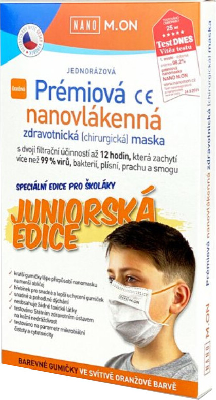 • Název: NANO M.ON Prémiová nanovlákenná maska Junior oranžová 10ks
