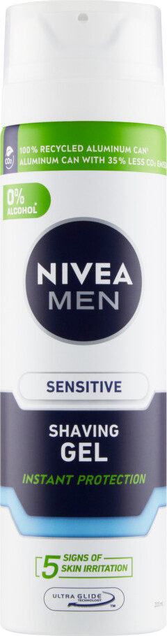 Gel na holení Nivea Sensitive má vylepšené složení s dvojnásobným obsahem zklidňujících přírodních extraktů. Nezpůsobuje pleti nežádoucí podráždění a příjemně ji osvěží. Speciální textura gelu z tváře nestéká a umožňuje tak snadný skluz holícího strojku po pokožce. Výsledkem je hladce oholená pleť bez známek podráždění.Šetrné složení s heřmánkem a vitamínem E pečuje o citlivou pleť. Extrakt z hamamelisu pomáhá uzavírat a hojit rány, zklidňuje pocit pálení a svědění a má protizánětlivé účinky.