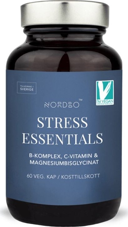 Nordbo Stress Essentials je doplněk stravy s obsahem vitamínů v biologicky aktivních formách (B-komplex, vitamín C, inositol, cholin, organický hořčík). Obsahuje celkem 12 synergicky působících složek - vitamíny B1, B2, B3, B5, B6, B7, B9, B12, cholin, inositol, kysele neutrální vitamín C a hořčík (chelátová vazba).Vitamín B1, B2, B3, B5, B6, B7 přispívají k normální činnosti nervové soustavy a normálnímu energetickému metabolismu.Vitamín B9 přispívá ke snížení míry únavy a vyčerpání.Vitamín B12 přispívá k normálnímu energetickému metabolismu a činnosti nervové soustavy, k normální psychické činnosti a ke snížení míry únavy a vyčerpání.Hořčík přispívá ke snížení míry únavy a vyčerpání a normální činnosti nervové soustavy.Vitamín C přispívá k normální funkci imunitního systému, snížení míry únavy a vyčerpání, ochraně buněk před oxidativním stresem a zvyšuje vstřebávání železa.Výhody:Organicky vázaný hořčík (bisglycinát hořečnatý).Kysele neutrální vitamín C (askorbát vápenatý).Špičková kvalita a čistota/Made in Sweden (GMO free).Certifikát I'm Vegan organizace Djurens Rätt (Animal Rights).Produkt neobsahuje živočišné složky, pojiva a nežádoucí balastní složky.Nordbo = kvalita a klinicky prověřené zdroje + udržitelnost a etická odpovědnost.Balení obsahuje 60 kapslí. Hmotnost 49,7 g.