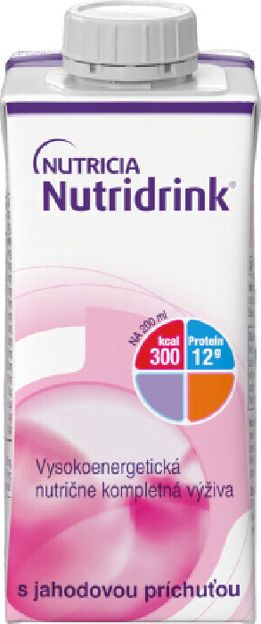 Nutridrink s jahodovou příchutí je potravina pro zvláštní lékařské účely - vysokoenergetická nutričně kompletní tekutá výživa. Nutridrink je určený pro řízenou dietní výživu při podvýživě související s nemocí. Pouze pro použití pod lékařským dohledem.Bez lepku. Neobsahuje vlákninu. Pouze pro enterální použití. Vhodné jako jediný zdroj výživy.Balení obsahuje 200 ml.