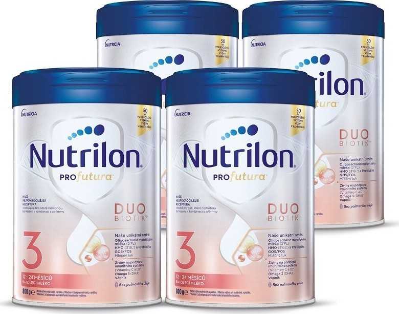 Nutrilon 3 Profutura DUOBIOTIK 4x800g od populárního výrobce Nutricia - tento hit získáte v neopakovatelné akci za 1 996 Kč. Výhodné ceny máme pro všechny zákazníky. Oblíbený bonus, BEZPLATNÉ poštovné a balné, je poskytováno pro objednávky nad Kč. Lepší nabídku už na trhu hledat nemusíte.
