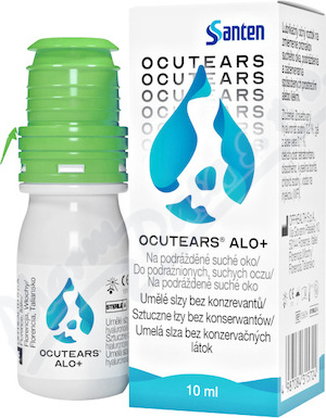 Ocutears Alo plus je zdravotnický prostředek. Jedná se o oční viskoelastický roztok bez konzervantů určený k léčbě symptomů suchého oka, nepříjemného pocitu v oku a k ochraně rohovky. Může se také podávat při používání kontaktních čoček ke zvlhčení očí a pro jejich úlevu. Je vhodný rovněž při delším pobytu na slunci, pobytu v klimatizovaném prostředí, delším používání digitálních obrazovek a může přinést úlevu při nepříjemném pocitu po oční operaci. Balení obsahuje 10 ml.