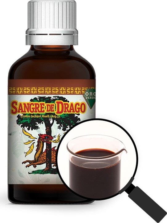Oro Verde Sangre de Drago je doplněk stravy ve formě tinktury obsahující 100% primární pryskyřice/latexu ze stromu Croton lechleri Muell. Arg.