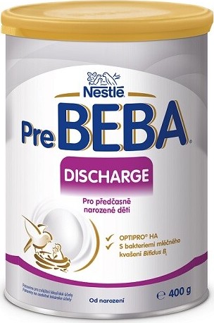PreBEBA DISCHARGE je hypoalergenní kojenecká výživa s polynenasycenými mastnými kyselinami LC-PUFA, probiotiky a H.A. lehce stravitelnými bílkovinami pro nedonošené novorozence a kojence s nízkou hmotností od 1800g. Vhodná od narození. Potravina pro zvláštní účely. Balení obsahuje 400 g.
