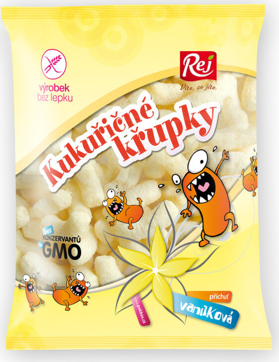 Rej Kukuřičné křupky vanilkové 90g od oblíbené společnosti REJ - tento artikl je v tento okamžik levně za 39 Kč. Ceny a dodací lhůty tlačíme stále dolů. Při objednávce nad Kč získáte DOPRAVU ZDARMA. Pokud budete spokojeni, doporučte nás prosím svým známým.