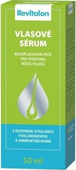Revitalon Vlasové sérum je přípravek s vysokou koncentrací účinných látek určených pro péči o slabé, poškozené a vypadávající vlasy. Díky aplikaci přímo na pokožku vyživuje vlasové kořínky a podporuje růst vlasů. Vlasové sérum nemastí ani nezatěžuje vlasy.Neobsahuje parabeny, barviva ani formaldehyd.Balení obsahuje 50 ml.