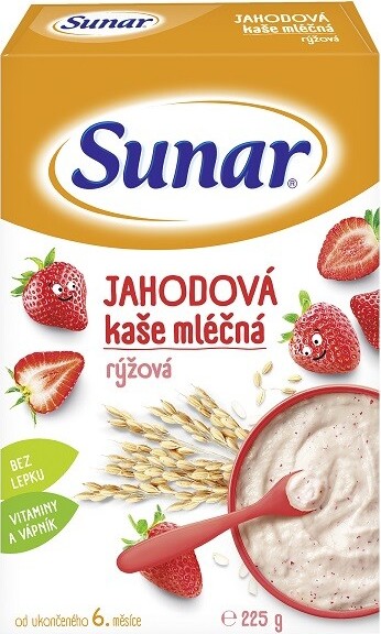 Sunar mléčná kaše jahodová obsahuje vyváženou kombinaci zdravé výživy a přirozené mléčné chuti. Přispívá ke správnému růstu, vývoji a celkovému pohodlí dítěte. Kaše má dobrou rozpustnost, je výživná, lehce stravitelná a bez přidaného cukru. Má jahodovou příchuť a je vhodná pro děti od ukončeného 6. měsíce věku. Obsahuje vybrané cereálie, které by se měly stát součástí jídelníčku pro spokojené bříško každého dítěte. Kaše je vyrobena z velmi kvalitních přírodních surovin, bez konzervačních látek a barviv. Je bohatá na vitaminy a minerální látky včetně vitaminu D a vápníku Výrobek je vhodný pro děti od ukončených 6. měsíců. Balení obsahuje 225 g.