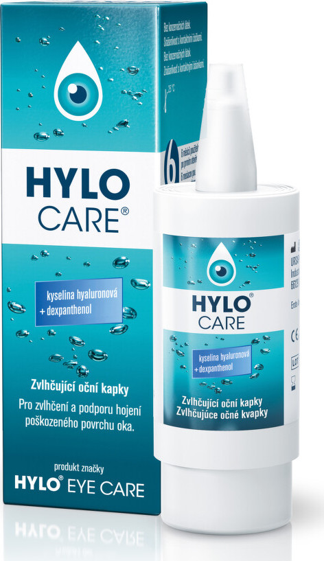 Hylo-care je sterilní roztok s hyaluronátem sodným, který zvlhčuje povrch oka, stabilizuje slzný film a redukuje podráždění. Přípravek napomáhá intenzivnímu zvlhčení rohovky, spojivky a zabraňuje nadměrnému odpařování slz. Díky tomu mizí pocit pálení a svědění očí. Díky obsahu dexpanthenolu je vhodný také na pooperační péči o oko. Přípravek může být používán i při nošení kontaktních čoček.