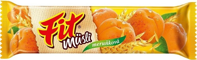 Müsli tyčinka FIT s meruňkovou příchutí je plochá lisovaná tyčinka obsahující cereálie a sušené ovoce (sušina minimálně 80 %). Vhodné i pro diabetiky.Balení obsahuje 30 g.