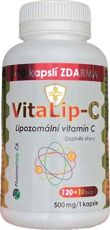 VitaLip-C - doplněk stravy s obsahem vitamínu C v lipozomální formě, vyrobený patentovanou lipozomální technologií LipoCellTech TM, v níž je vitamín C obalen vrstvou přírodních fosfolipidů (tzv. lipozomů). Tato lipozomální vrstva zajišťuje transport a ochranu vitamínu C přes žaludek do střev, kde také zajišťuje efektivní vstřebávání do krve. Vytváří tak nejvyšší známou biodostupnost vitamínu C pro organismus (až na 95 %) a jeho větší využití v cílových tkáních, v imunitním a nervovém systému a dalších buňkách. Lipozomální forma tak udržuje oproti běžným lékovým formám v organismu několikanásobně vyšší hladinu vitamínu C a delší dostupnost pro antioxidační ochranu zdravých buněk, imunitní a nervový systém. Díky lipozomálnímu obalu a efektivní absorpci (vstřebávání) je přípravek VitaLip-C zároveň šetrný k zažívacímu ústrojí.Vitamin C přispívá k k normální funkci imunitního systému, ke snížení míry únavy a vyčerpání, k ochraně buněk před oxidativním stresem, k normální činnosti nervové soustavy, k normální psychické činnosti, ke zvýšení vstřebávání železa, k normálnímu energetickému metabolismu, k normální tvorbě kolagenu pro normální funkci krevních cév, kůže, zubů, dásní, kostí a chrupavek a k udržení normální funkce imunitního systému během intenzivního fyzického výkonu a po něm.Balení obsahuje 130 kapslí.