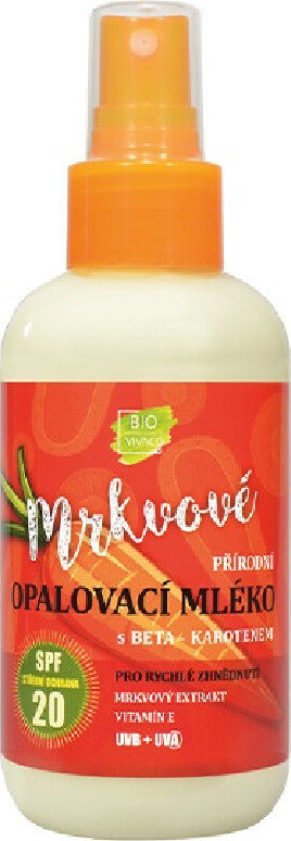 Vivaco 100% Přírodní opalovací mléko s mrkvovým extraktem SPF20 150 ml od oblíbeného výrobce VIVACO - toto zboží doporučujeme v perfektní akci za 199 Kč. V našem obchodě najdete nejvýhodnější ceny. Pokud máte rádi bezplatné poštovné, přidejte si do své objednávky zboží za více, jak Kč. Nakoupit a ještě ušetřit, co si víc přát.