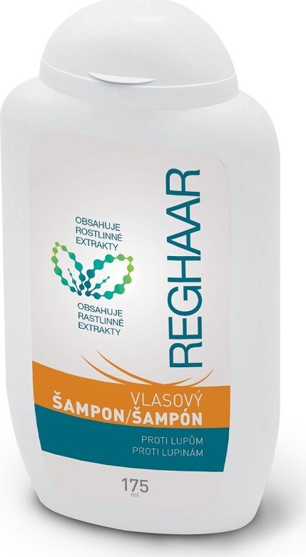 Šampón podle jedinečné receptury z výtažků kopřivy a lopuchu.Vlasový šampon Reghaar proti lupům je připravován podle speciální receptury s obsahem rostlinných výtažků kopřivy dvoudomé a lopuchu obecného, které napomáhají snižovat vypadávání vlasů, zamezují jejich zvýšenému maštění, vyživují vlasovou pokožku a dodávají vlasům zdravý vzhled a přirozený lesk. Mimořádná účinnost vlasového šamponu Reghaar proti lupům je zaručena přítomností octopiroxu, látky odstraňující lupy a působící proti jejich tvorbě.Odstraňuje lupy, působí proti jejich tvorběOctopirox - látka proti tvorbě lupů, výtažky z kopřivy a lopuchu.Balení obsahuje 175 ml.