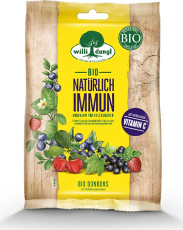 Willi Dungl BIO furé lesní ovoce jsou bonbony s vitamínem C a s příchutí lesního ovoce, které obsahují vysoce kvalitní suroviny z ekologického pěstování. Vitamín C získaný z třešně Acerola přispívá k normální funkci imunitního systému. Díky přírodnímu aroma borůvek, jahod a černého rybízu získávají bonbony ovocnou chuť. S ovocnou příchutí.V BIO kvalitě.Balení obsahuje 60 g.